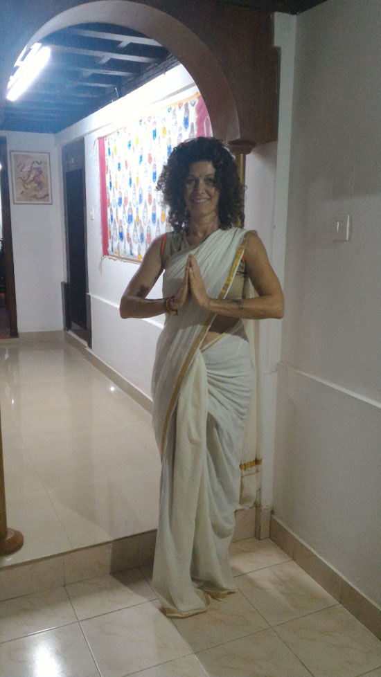 Grata a tutto il gruppo nel quale ho potuto specchiarmi, a volte accogliendo, a volte respingendo, grazie a Simo (Simone Fanciullo) che ogni tanto ci riportava nel qui e ora, grazie a Malathi, alle sue mani, per la sua dolcezza, vigore e amorevolezza; grazie al maestro Gopalakrishnan, pazienza e presenza amorevole; grazie al maestro Praven T.R. per il suo smile, generosità, capacità, simpatia; grazie a Vidya Parameswara grande sapienza e illuminazione; grazie a Vishnu dolcezza e umanità fatta a persona; grazie a Cheeru e Baby Ceci grandi e capaci donne; un grazie speciale a Shajeer che mi porterò sempre nell'animo, con il suo pacato e sussurrato italiano, che avrei ascoltato all'infinito...ogni gesto, ogni parola, ogni risata, ogni sguardo arriva dal suo cuore, un cuore generoso, aperto, instancabile.